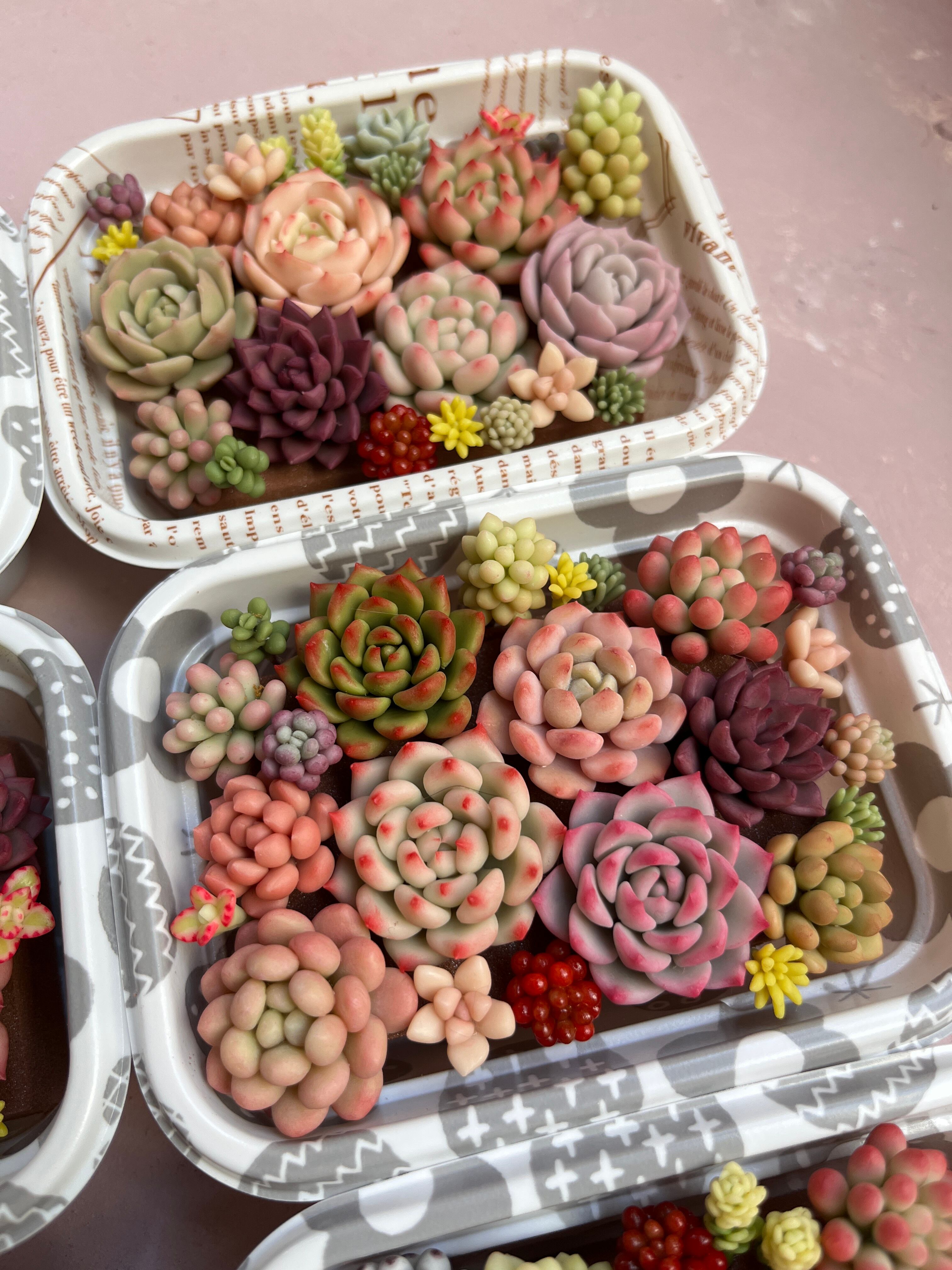 2〜3センチくらいの多肉とセダムが入っています。2.5号鉢に植えられるくらいのボリュームです。お好きなリメ鉢などに入れて楽しんでくださいね。