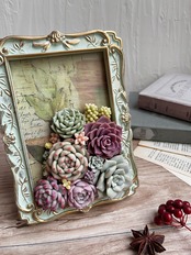 多肉額縁寄せA Claysucculents in a frame A