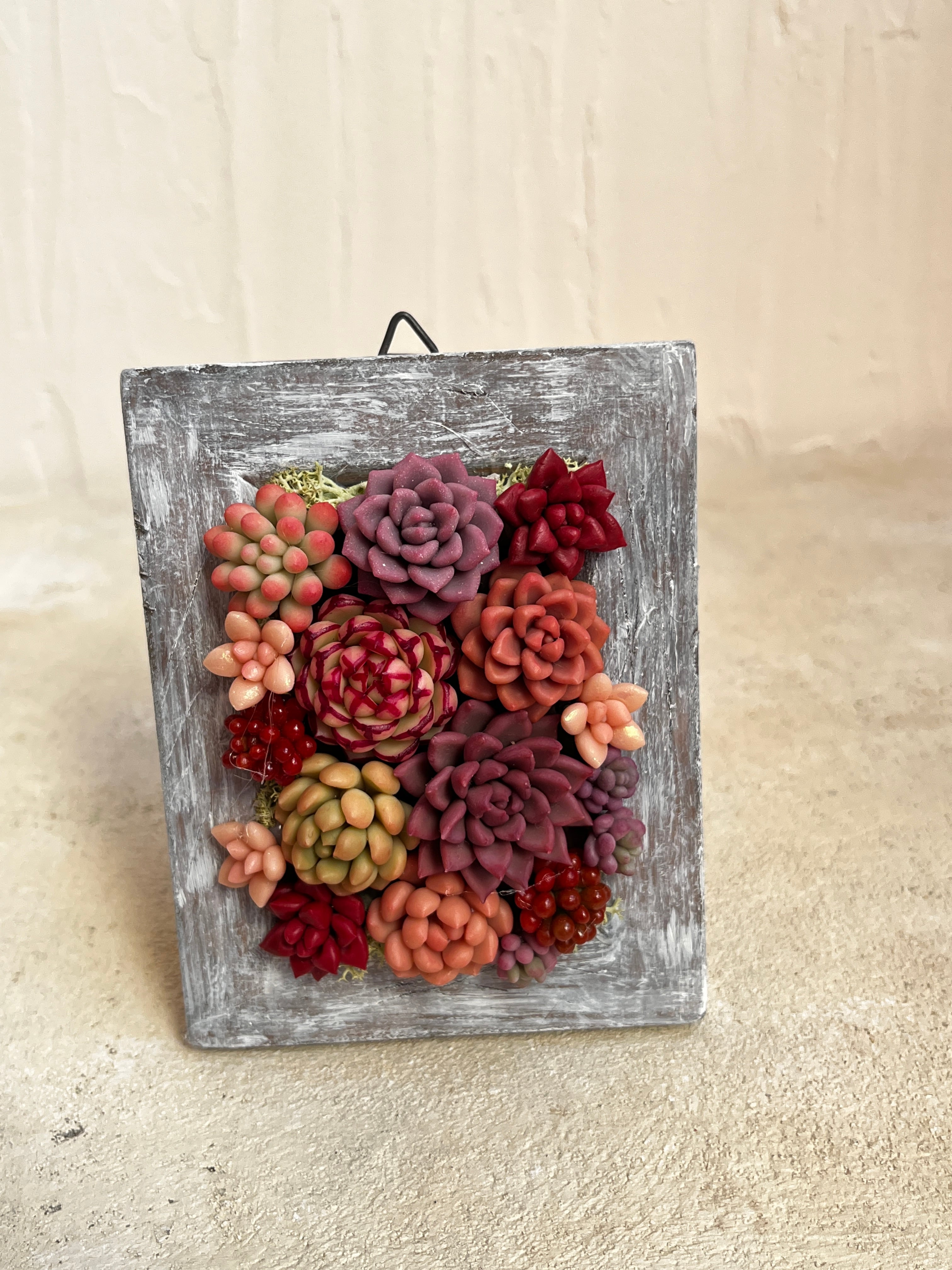 秋らしい色合いの多肉がフレームの中にたくさん入っています。