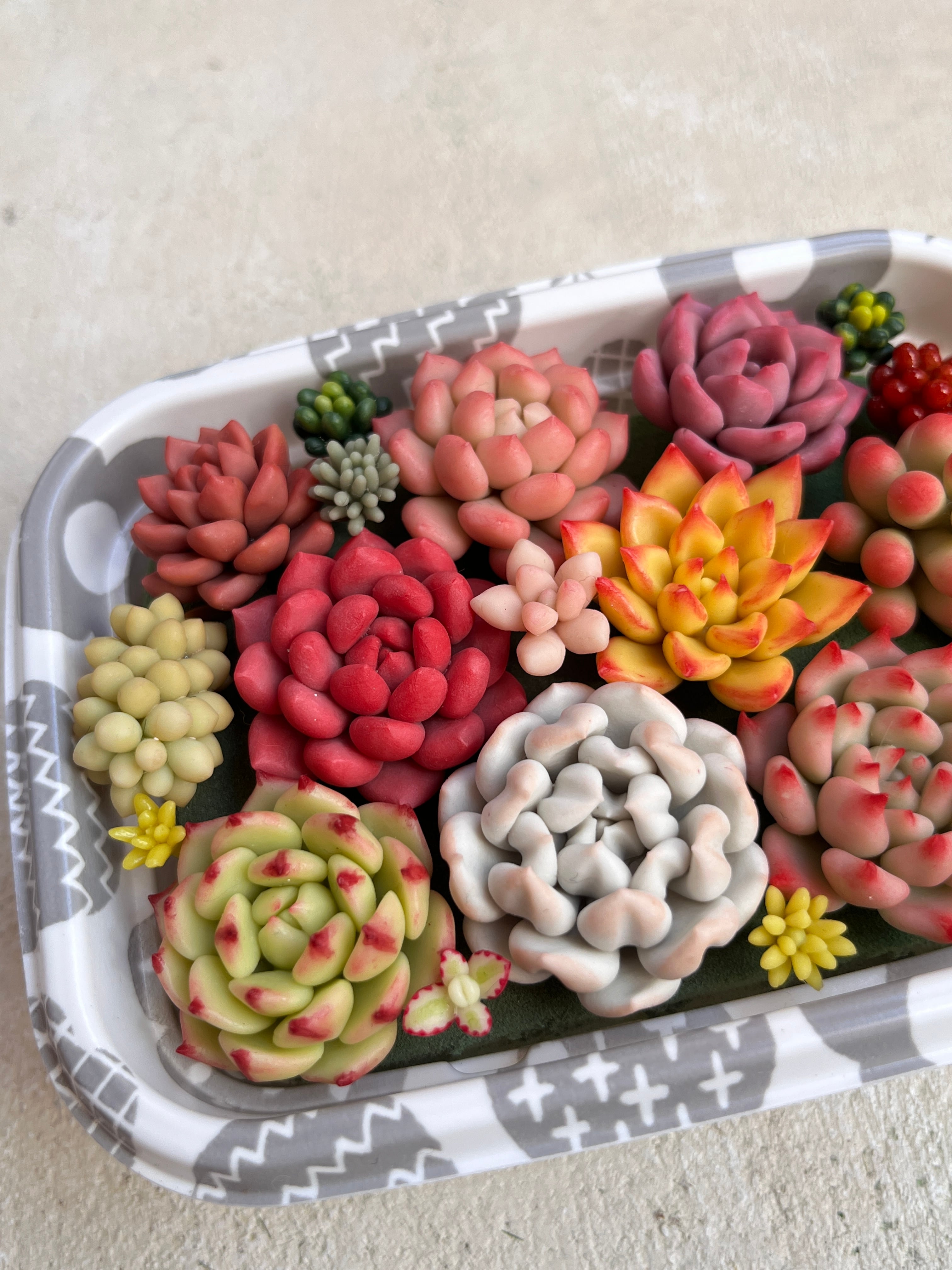 2〜3センチくらいの多肉とセダムが入っています。2.5号鉢に植えられるくらいのボリュームです。お好きなリメ鉢などに入れて楽しんでくださいね。