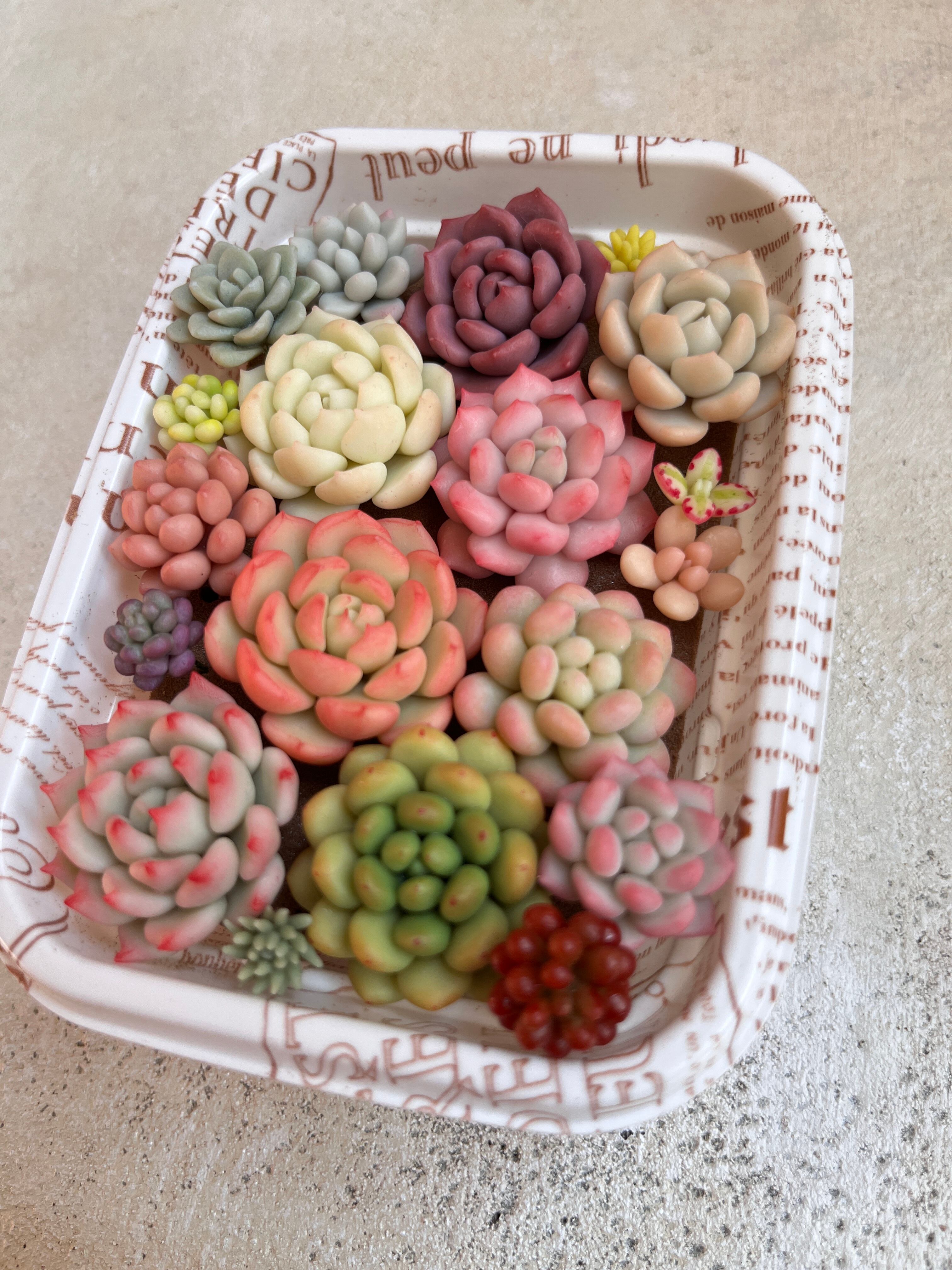 2〜3センチくらいの多肉とセダムが入っています。2.5号鉢に植えられるくらいのボリュームです。お好きなリメ鉢などに入れて楽しんでくださいね。
