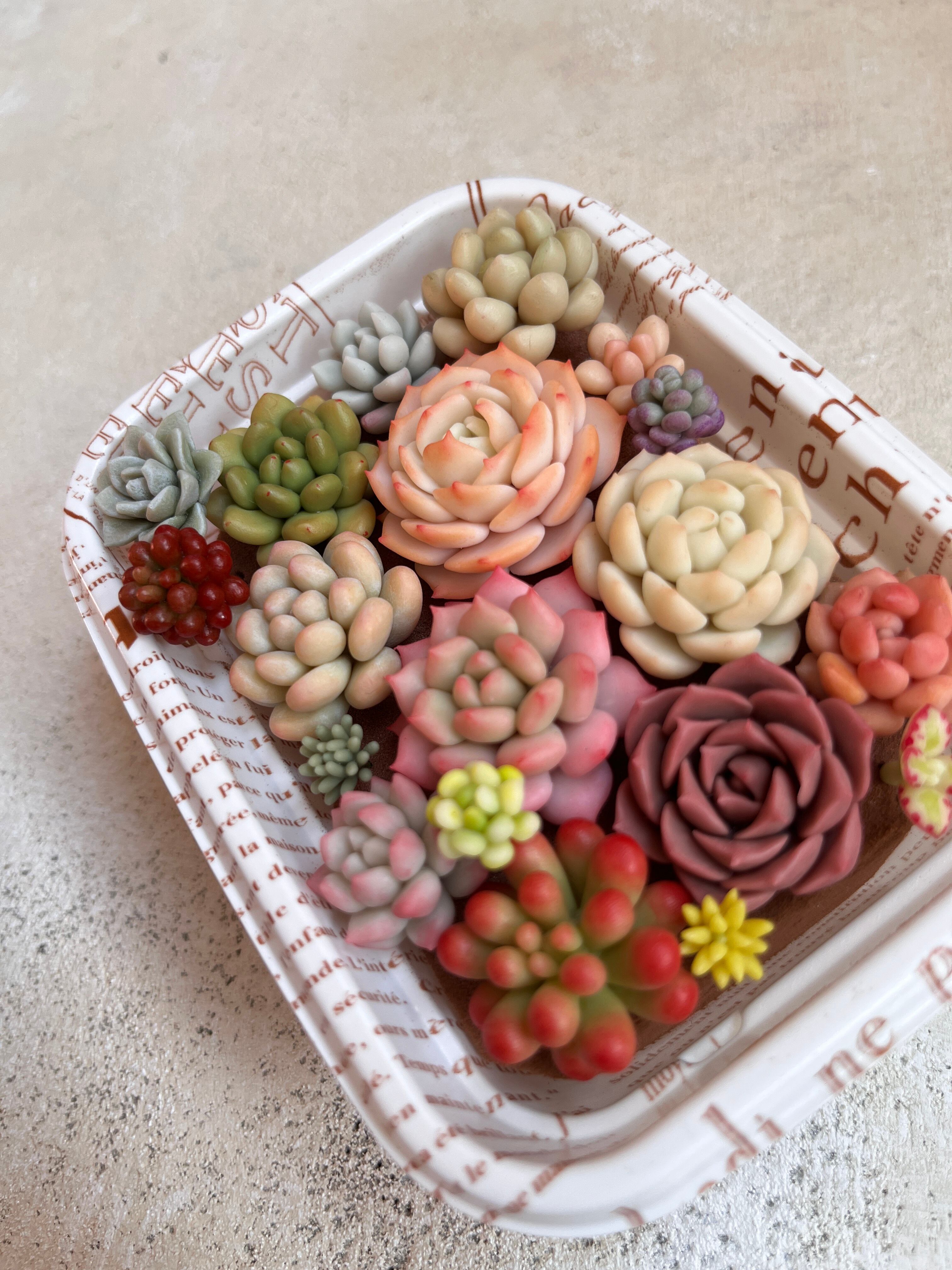 2〜3センチくらいの多肉とセダムが入っています。2.5号鉢に植えられるくらいのボリュームです。お好きなリメ鉢などに入れて楽しんでくださいね。