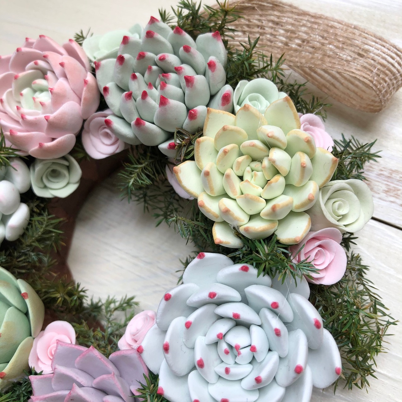 Colorful claysucculents wreath.