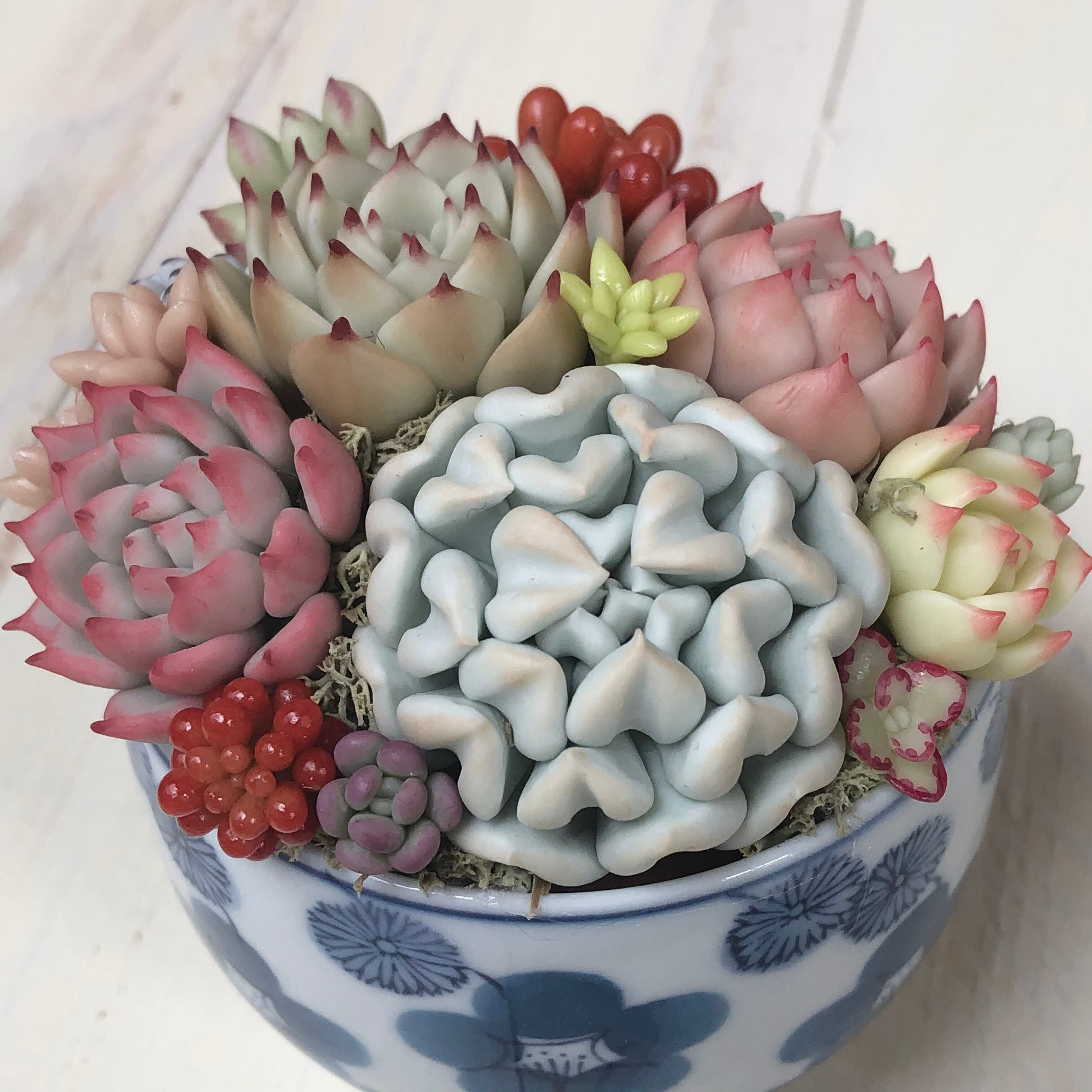 Realistic and cute claysucculents arrangement with a Japanese teacup.