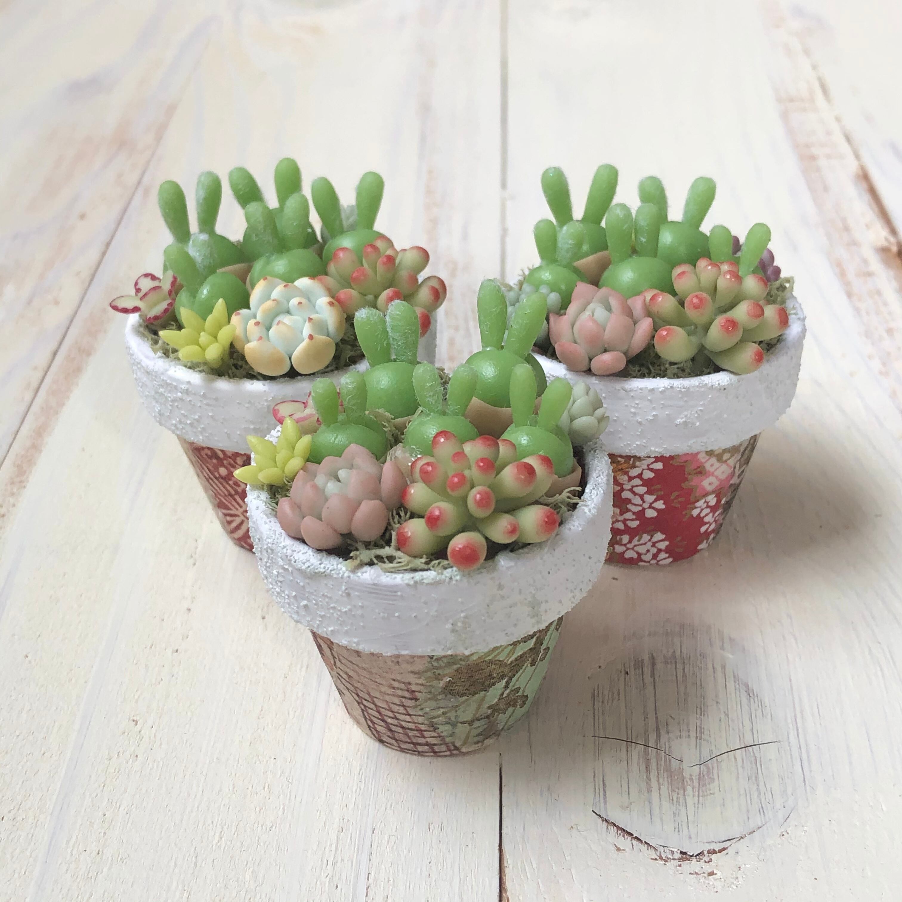 樹脂粘土で作ったリアルな多肉を小さな鉢に植えました。