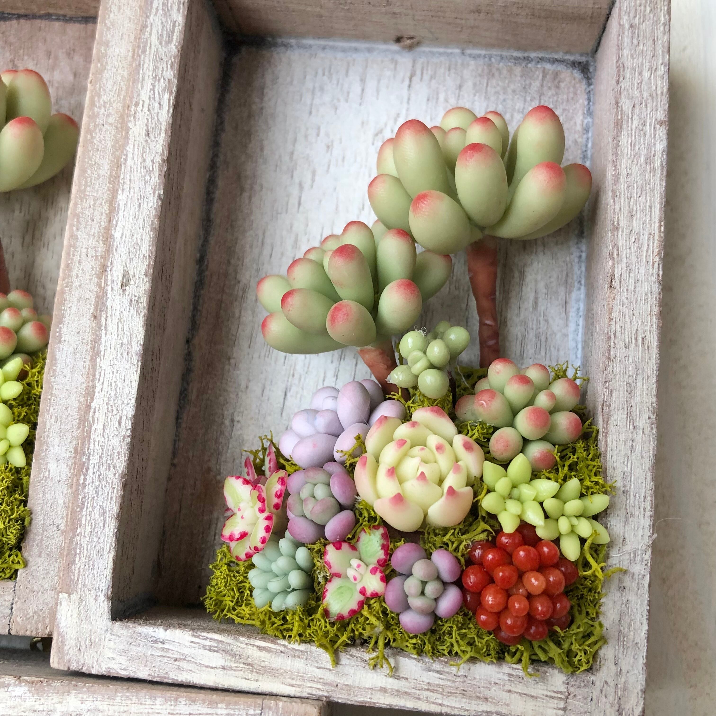 乙女さんのミニフレーム Clay succulents in a small frame