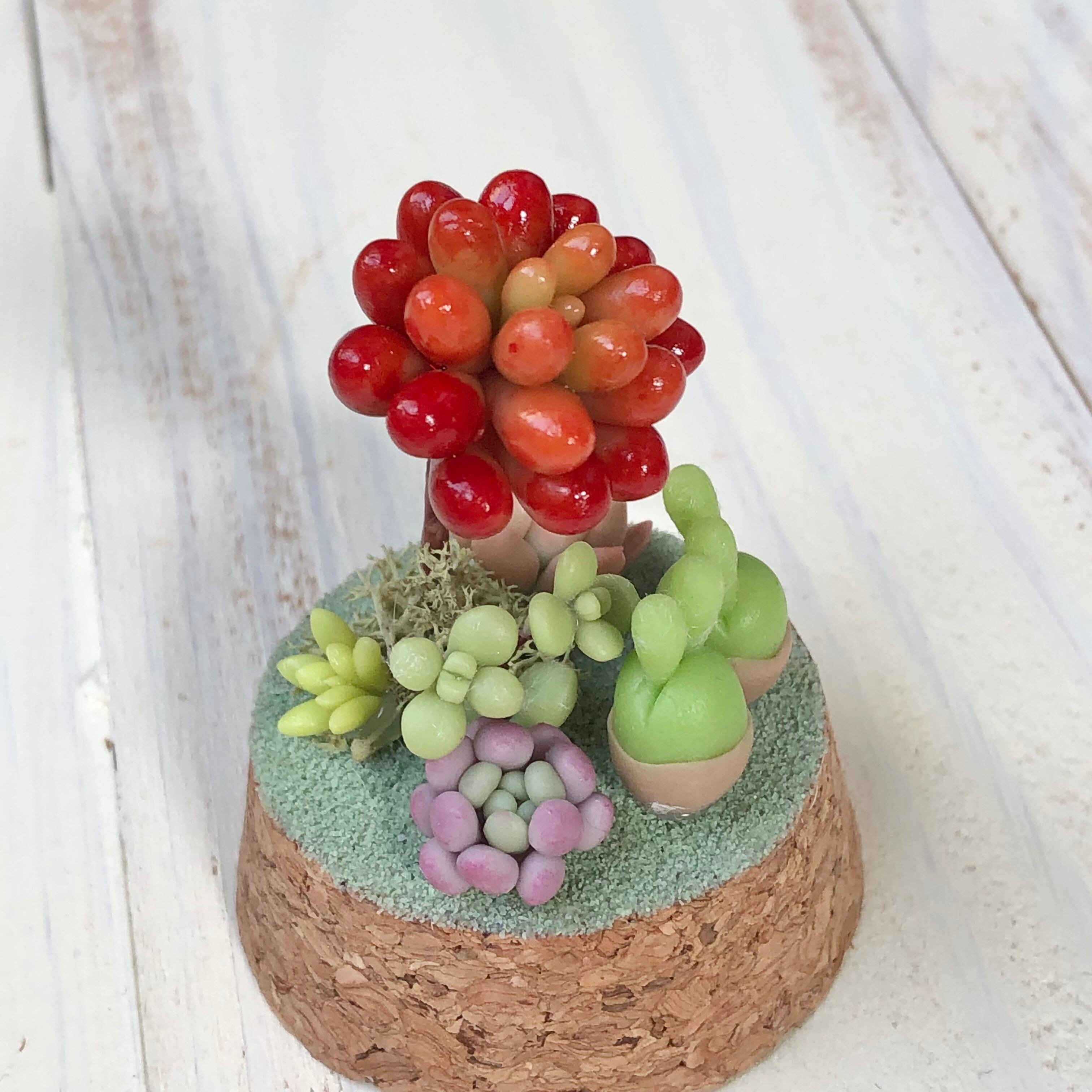 樹脂粘土で作ったリアルな多肉を小さなガラスドームに植えました。