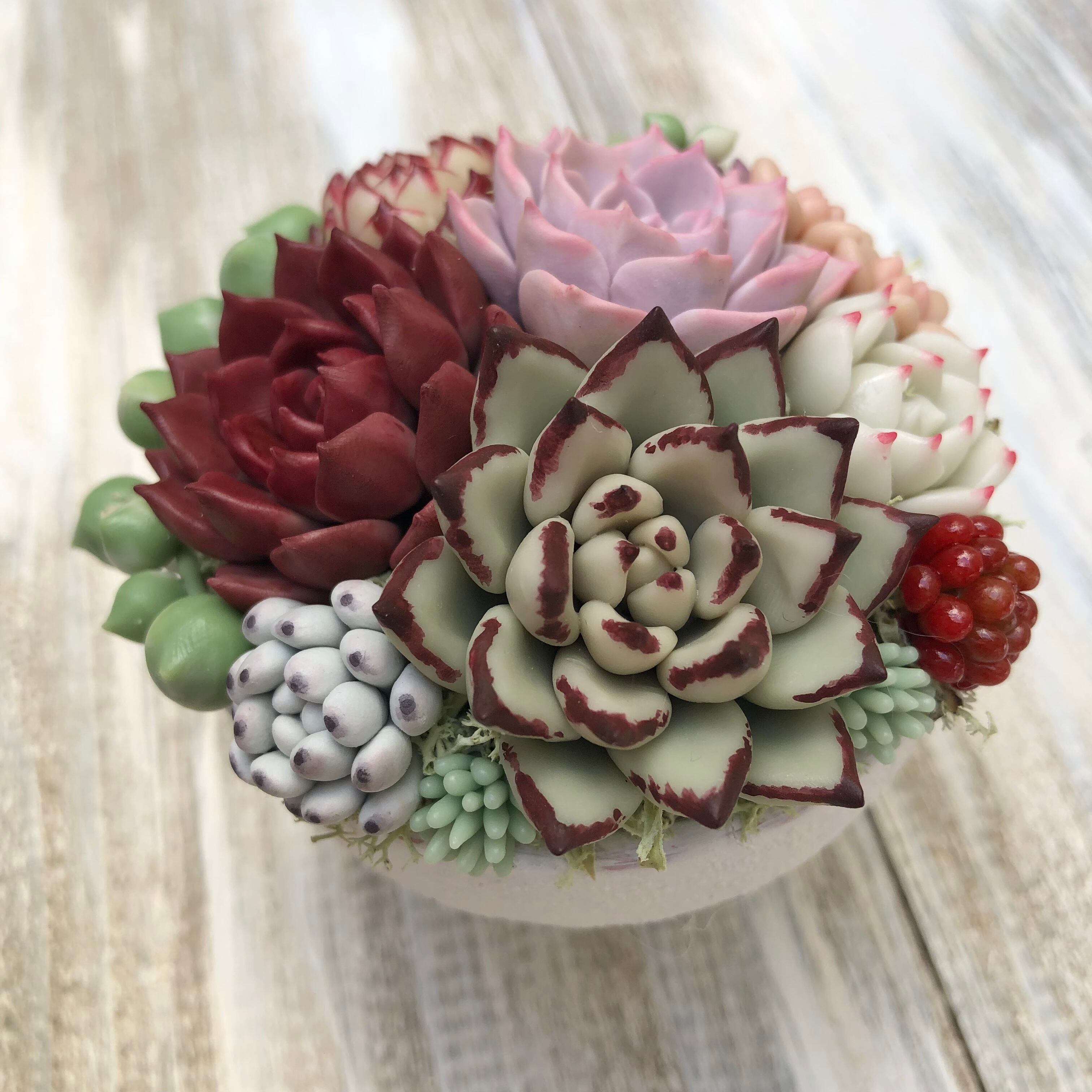 樹脂粘土で作ったリアルな多肉を小さな素焼き鉢にモリモリに植えました!