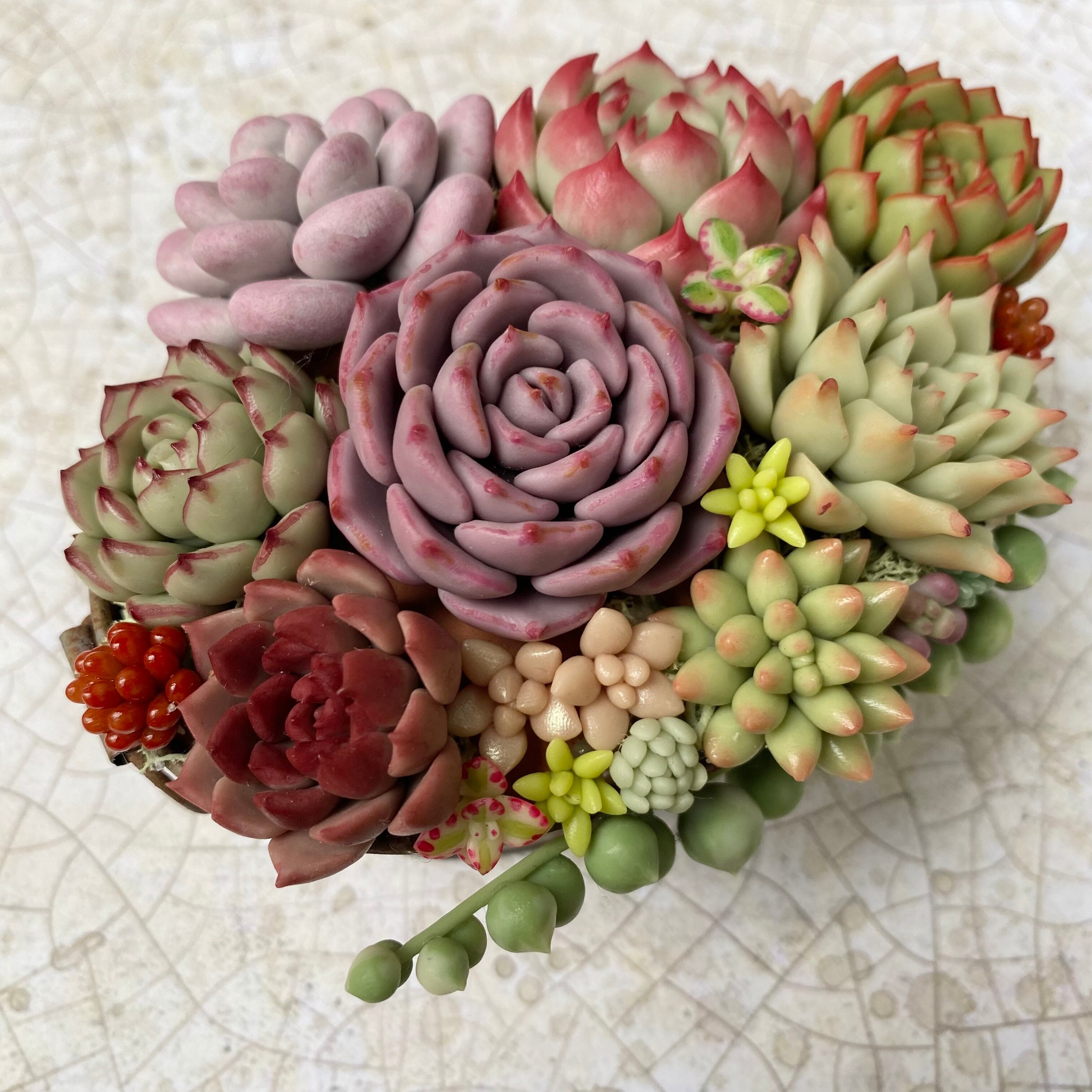 樹脂粘土で作ったリアルな多肉をアンティーク風のブリキ缶にモリモリに植えました!