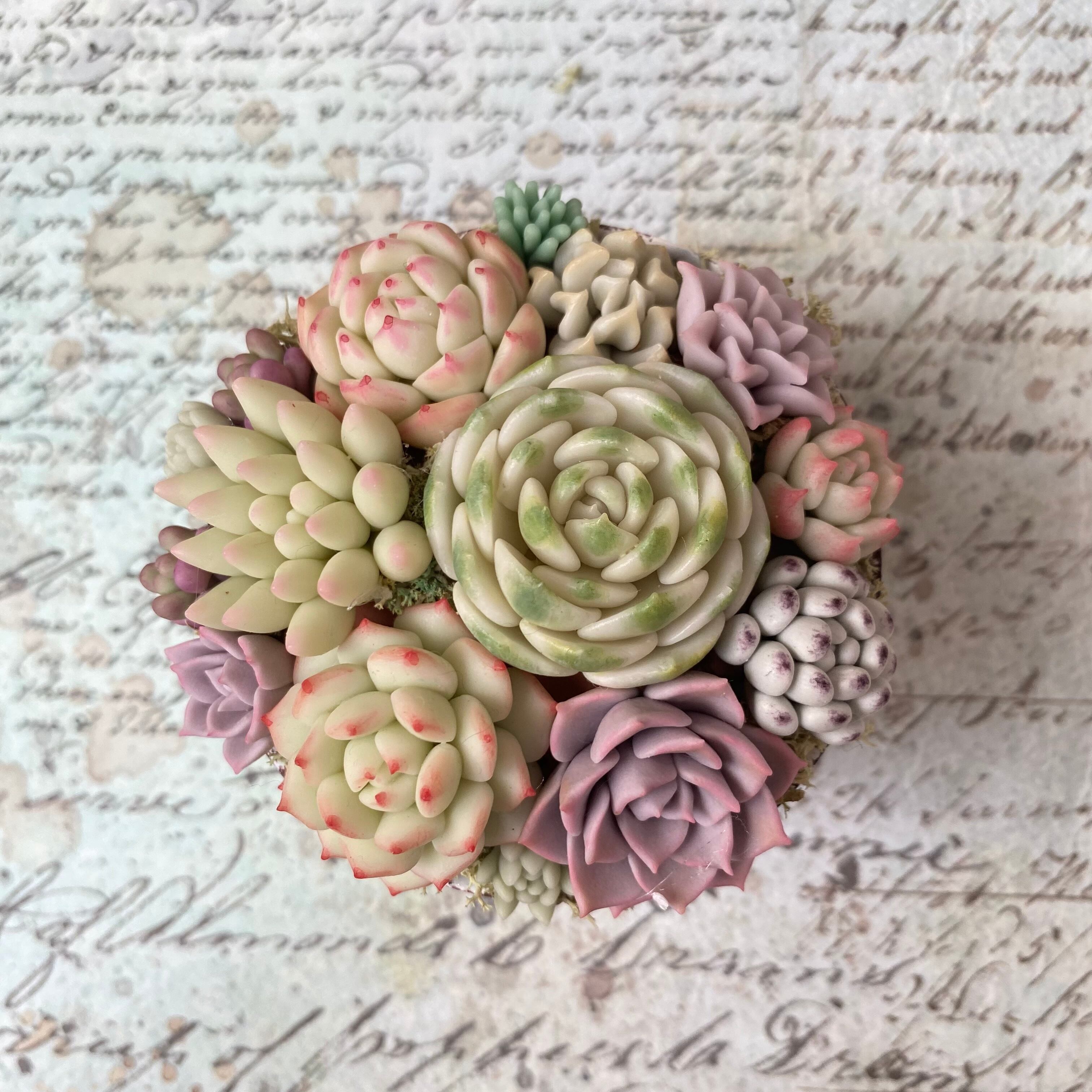 Colorful claysucculents are planted in a jellycup.
