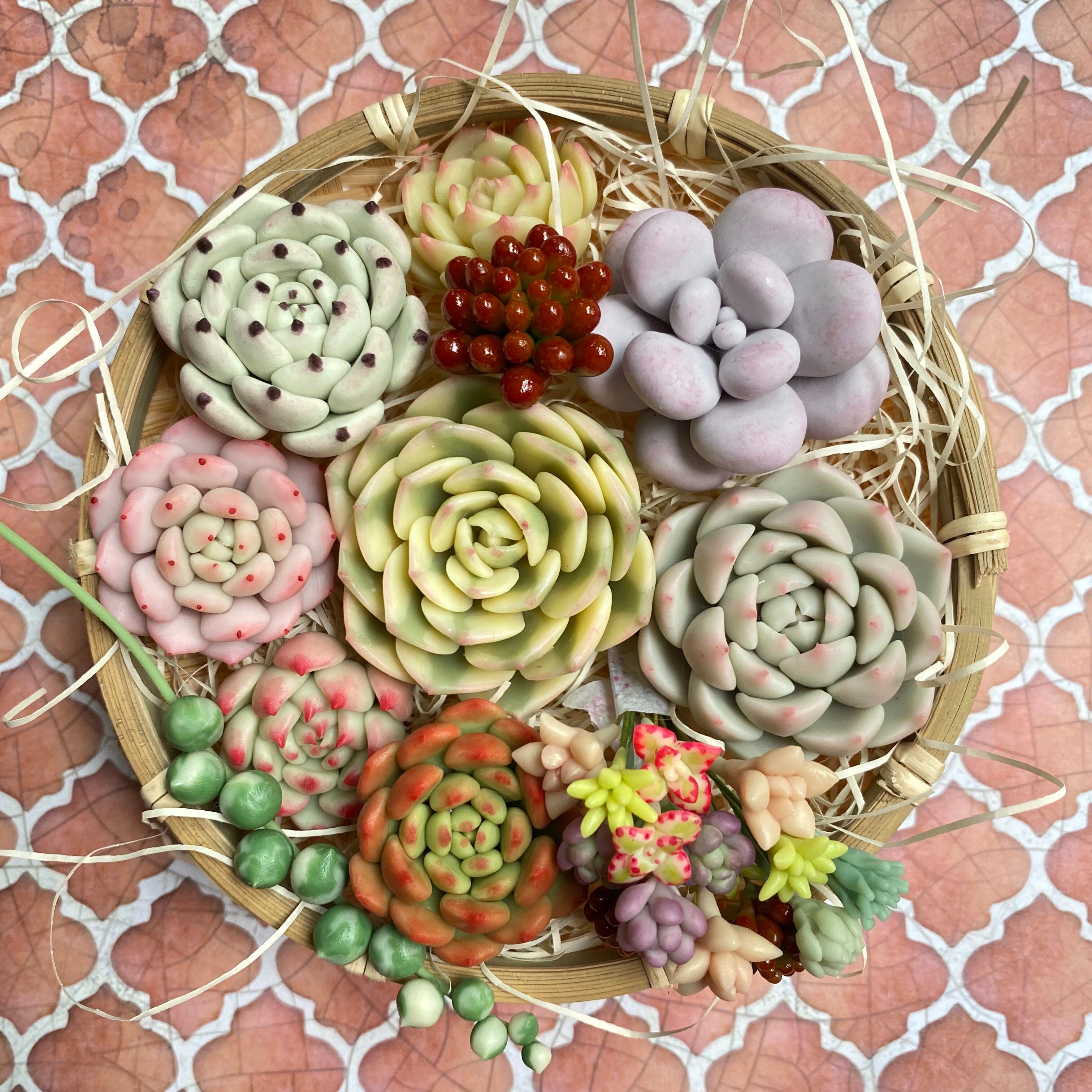 3〜4センチくらいの多肉、セダム、グリネのセットになります。