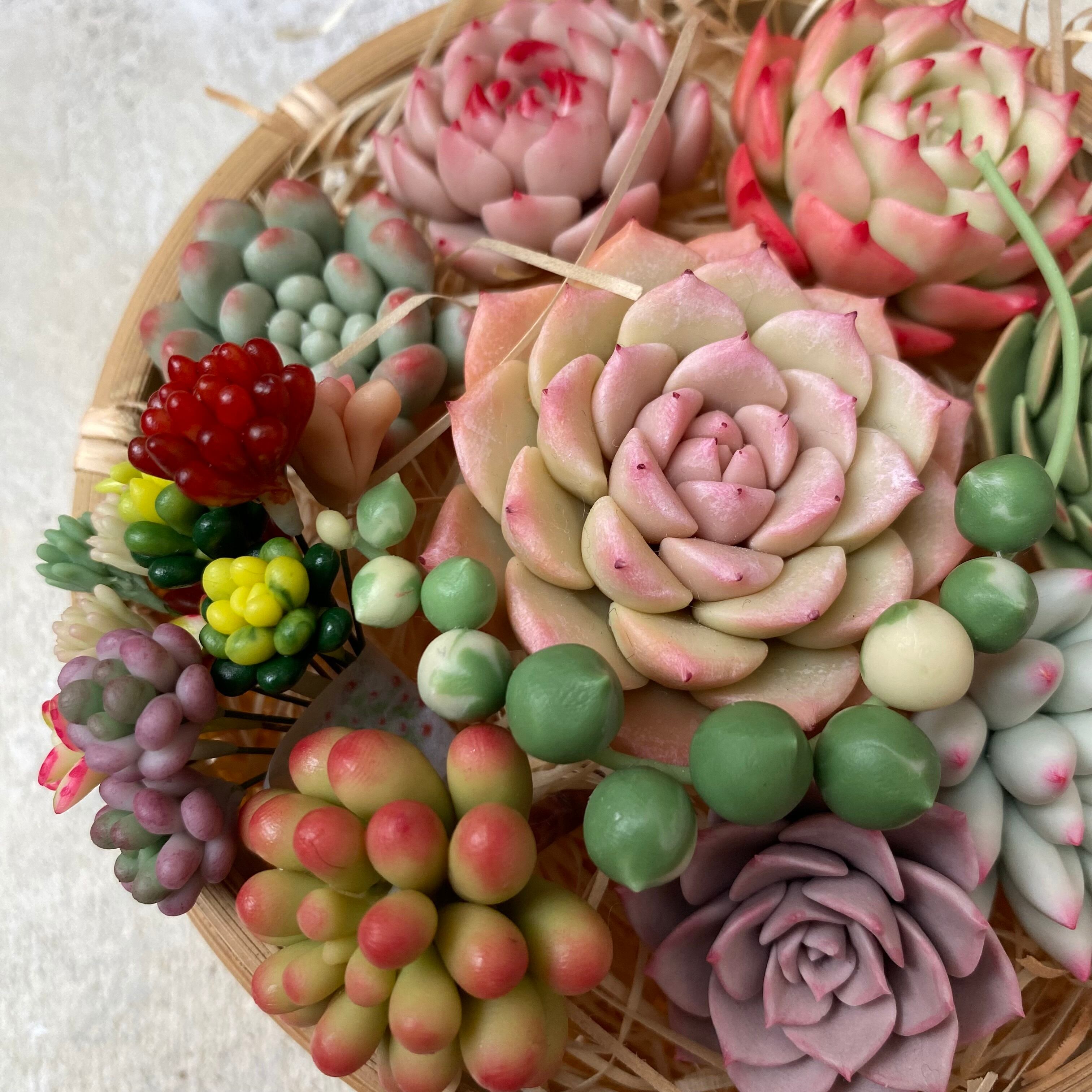 3〜4センチくらいの多肉、セダム、グリネのセットになります。