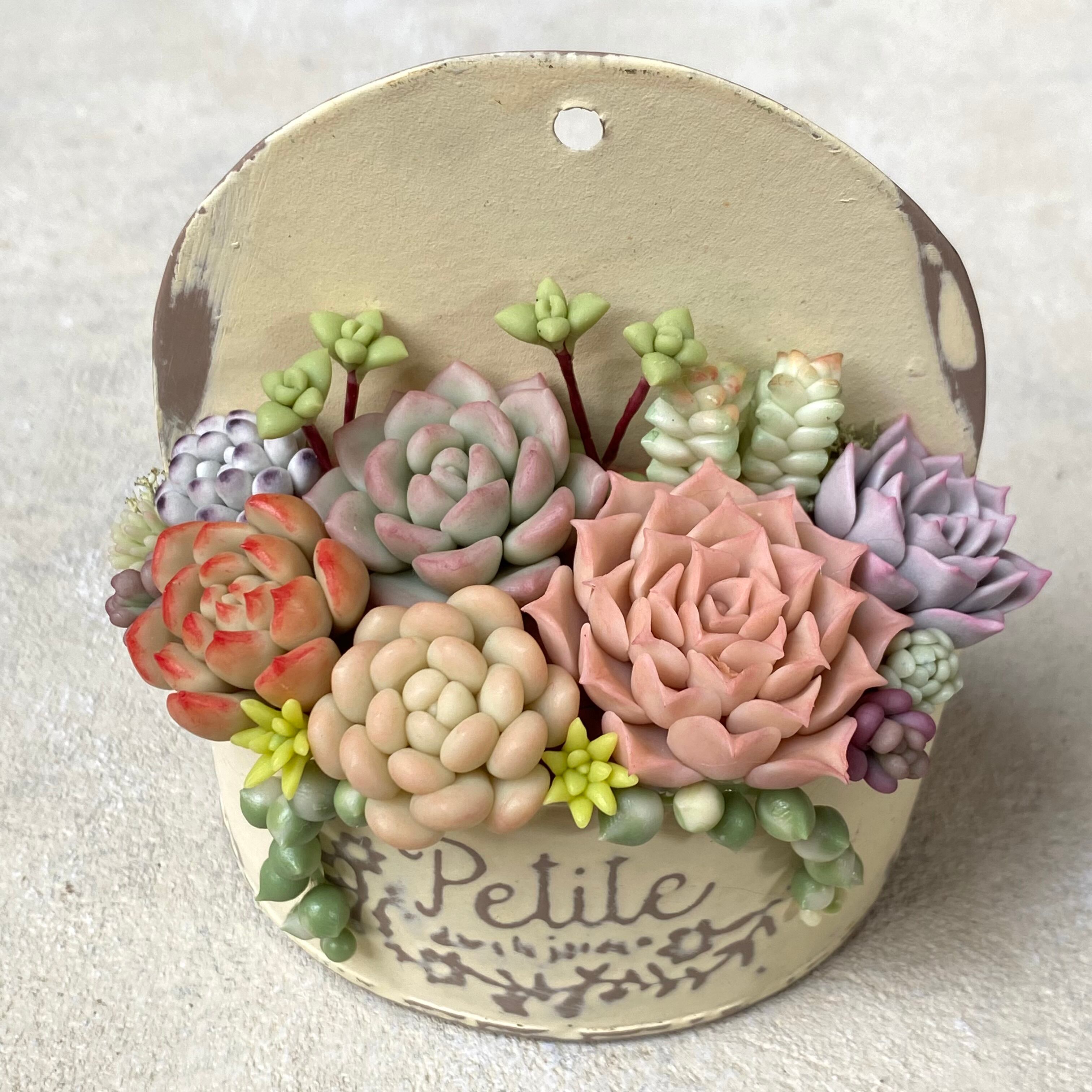 カラフルな粘土多肉をモリモリ入れています。