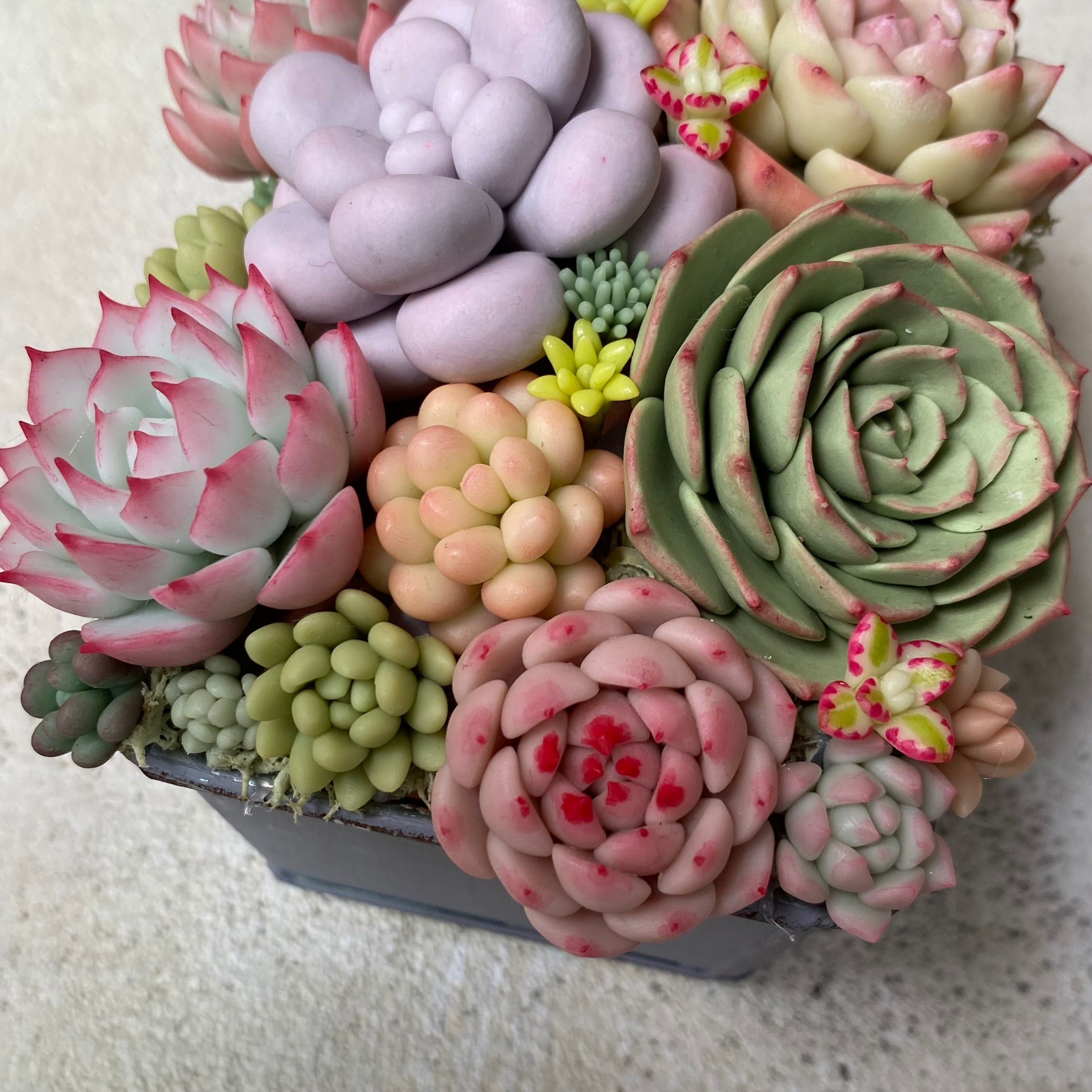 樹脂粘土で作ったリアルな多肉をアンティーク風のブリキ缶にモリモリに植えました!