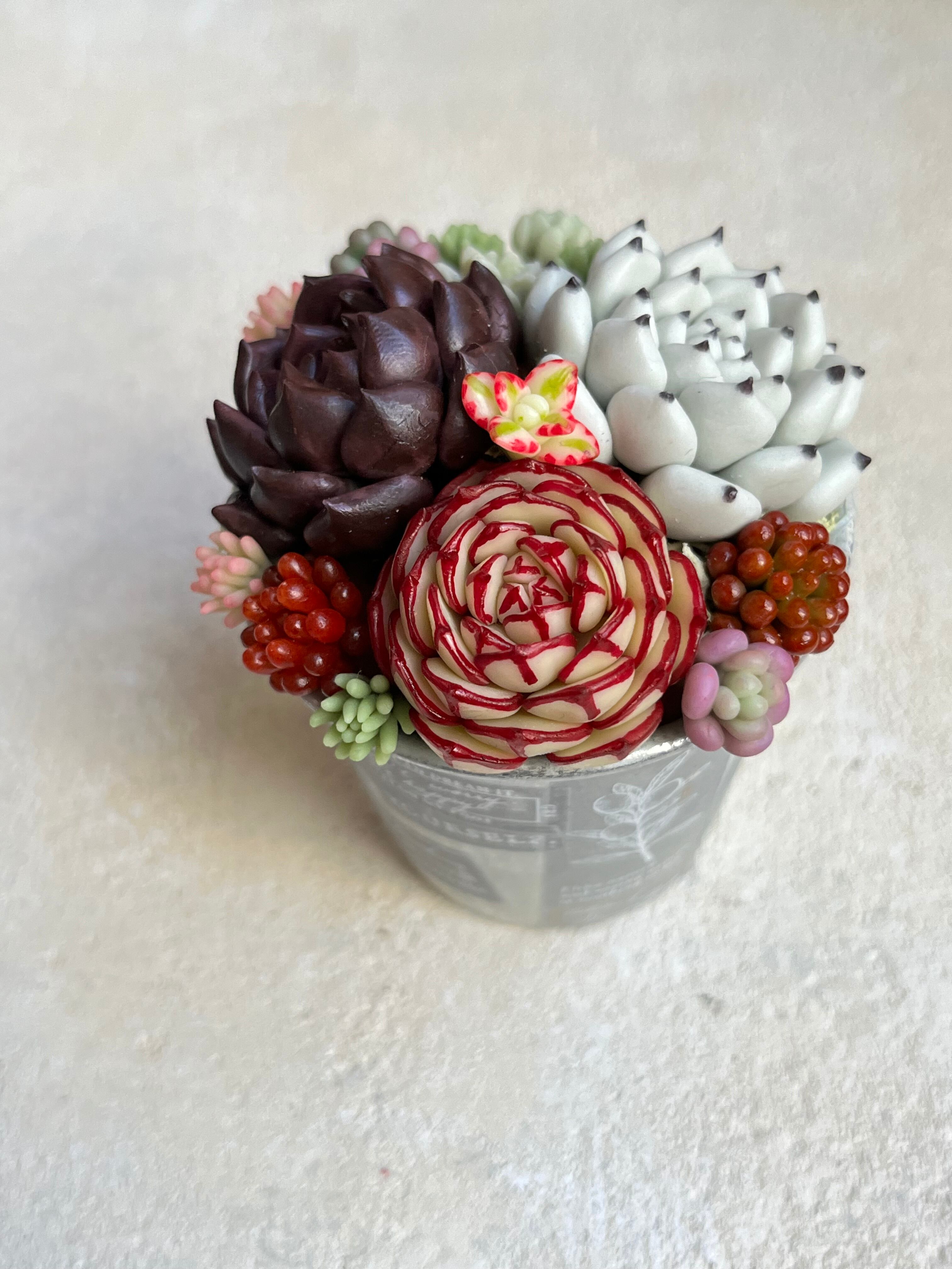 樹脂粘土で作ったリアルな多肉をアンティーク風にリメイクしたアルミカップに植えました!